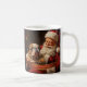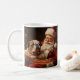 Une scène de Noël qui fait chaud au coeur dépeint le Père Noël, habillé de son emblématique costume rouge avec garniture de fourrure blanche, tenant un bulldog anglais dans ses genoux. Le bulldog, avec son visage ridé et ses grands yeux expressifs, regarde Père Noël avec un regard doux. Le visage de père Noël est plein de chaleur et de gentillesse, et il semble sourire du chien. Un cadeau parfait pour les amoureux de Bulldog.