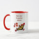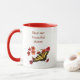Cette tasse présente un papillon noir et jaune Tiger Swallowtail sur des fleurs de Calibrachoa rouge et rose. Vous pouvez facilement personnaliser ou supprimer le texte qui dit : Sauvez notre belle planète.