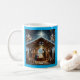 Cette belle et festive crèche s'ajoute parfaitement à votre décor de Noël. L'oeuvre présente la Sainte Famille, Marie, Joseph et le bébé Jésus, entourés d'anges et de bergers en adoration. La scène est placée sur un fond d'étoiles scintillantes et d'une étoile brillante, symbolisant la naissance du Christ. Cette image intemporelle est un rappel du vrai sens de Noël.