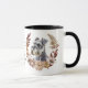 Une jolie couronne d'automne dans les tons marron, brun brun, brun et crème entoure l'aquarelle d'un magnifique Schnauzer Dog. L'image est imprimée deux fois sur la tasse, avec votre texte personnalisé entre eux.