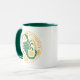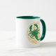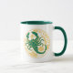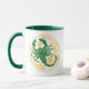Scorpion du zodiaque en vert et jaune sur une tasse à café à deux tons.