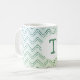 Belle et amusante zig zag griffé Chevron rayé tasse de café monogrammed dans de grandes teintes vert à bleu.