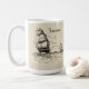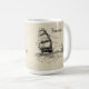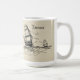 Un design qui nous rappelle les scrimshaw antiques décore cette tasse de café. Il montre deux voiliers qui courent avec leurs voiles déblayées et votre nom dans un texte ouvert.