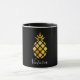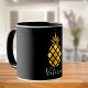Un ananas tropical moderne couleur faux or. Elégante couleur noire arrière - plan. Script et modèle de style à lettres blanches pour votre nom ou texte.
