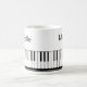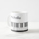 Mug moderne et élégant avec clavier de piano et notes de musique en noir et blanc personnalisé avec votre nom dans un script manuscrit. Idéal pour les professeurs de musique, les musiciens et les professionnels de la musique. MODIFICATIONS : Vous pouvez changer la couleur de fond blanc ou le style, la couleur, la taille et le placement de la police de texte en cliquant sur MODIFIER pour une apparence personnalisée ou simplement supprimer le nom de l'exemple pour laisser cette zone vide. OPTIONS : L'exemple est présenté dans la taille de mug de 11 oz ; d'autres tailles et styles de boissons sont disponibles sur la page de commande.