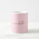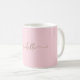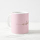 Fille Minimaliste Blush Rose Simple Élégant Or Monogramme Nom Signature Script Personnalisé Café Mug. Ce design avec votre prénom dans un joli style écrit à la main en noir et blanc signature typographie script en couleur or sur bébé rose ou rose clair arrière - plan couleur. Facile à customiser. Grand cadeau de ménage féminin élégant, aussi pour l’anniversaire, la journée de la mère, fête de 16 ans, mariage, douche nuptiale, baby shower, pour la fête de remise des diplômes et C’est pour la fille qui aime des choses uniques et élégantes.