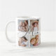 Envoyez un beau cadeau personnalisé à votre grand-mère (Mimi) qu'elle chérira pour toujours. Petits-enfants personnalisées spéciales photo collage tasse pour afficher vos propres photos et souvenirs de famille spéciaux. Notre design comprend un design simple de 10 photos collage grille avec "Mimi" conçu dans un style de script noir manuscrit. Chaque photo est encadrée et centrée dans une simple bordure dorée. Customisez avec les noms des petits-enfants.