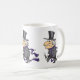 Caractère de dessin de vieux Scrooge grincheux pendant la tasse de Noël.