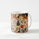 Autumnal Serenity" est un motif détaillé et harmonieux qui présente la diversité de la nature dans une représentation abstraite. L'oeuvre saisit l'essence d'une forêt qui se transforme en automne avec sa riche variété de motifs de feuilles et de couleurs chaudes. Le design se compose de feuilles stylisés, d'arbres et de chaînes de montagnes dans des tons terre de vert, brun, orange et des touches de bleu, créant un visuel apaisant et organique.