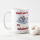 Saint Valentin "Seriez-vous ma Saint Valentin ?" Mug. Reportez mon illustration d'une Valkyrie, une déesse de la mythologie norse, qui monte à cheval volant, avec son amant guerrier. Elle doit choisir un guerrier déchu de la bataille et l'emmener à Valhalla, le palais du dieu. Là, pour être dévoué à lui, et pour l'entraîner pour la bataille ultime de Ragnarok.