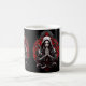 Mon art représente une figure qui combine des éléments de mysticisme et d'art gothique, avec un personnage central avec une expression sereine mais intense. La femme vêtue d'une robe à capuchon. Sa peau est pâle, presque blanche, ce qui lui donne une apparence éthérée. Elle se fait serrer les mains dans un geste de prière, mettant l'accent sur un sentiment de contemplation ou de rituel. Le visage de la femme est très stylisé, avec une base blanche et des marques rouges. Un petit point rouge est présent sur son front, et d'autres lignes rouges sont sous ses yeux, ce qui ajoute à l'aura mystique.