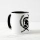 Silhouette de casque spartiate et épaules avec deux épées croisées et couronnes entourant le casque.