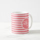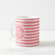Commencez votre journée avec des pensées positives ! Un design moderne et mignon présente la citation d'affirmation motivationnelle "Seules de bonnes vibrations" en lettres blanches sur notre tasse à café au motif rayé corail et blanc élégant. Le design est visible pour les droitiers et les gauchers, les mots étant visibles des deux côtés.
