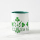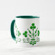 Art vintage d'un shamrock à trois feuilles en vert irlandais avec des éléments gothiques bouclés au fond.