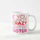 C'est la meilleure tasse pour vous avec la citation "Si vous pensez que je suis fou, vous devriez rencontrer ma soeur" style coloré et moderne. Vous pouvez utiliser cette tasse pour des cadeaux d'anniversaire pour votre soeur.