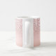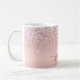 Mug personnalisé avec nom en écriture cursive métallisé rose gold pailleté Glamour Féminin. Ces créations présentent votre prénom dans un joli style manuscrit avec une typographie à queue en arabesque sur un fond rose poudré avec un effet métallisé rose gold et une bordure scintillante pailletée. Ceux-ci sont faciles à personnaliser. Cadeau de pendaison de crémaillère élégant et féminin, également pour un anniversaire, la fête des mères, un mariage, une fête d'anniversaire pour les 16 ans, une douche de mariée, une baby shower, pour une fête de remise de diplôme et c'est pour la fille qui aime les choses uniques et scintillantes.