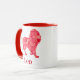 Mug dans le symbole du panneau solaire astrologique Leo, dans un motif fractal de rouge profond, corail et crème