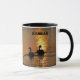 Une photo de deux oies canadiennes dans une Réflexion dorée du coucher de soleil qui est brillante et colorée à Hutchinson Kansas USA qui était sur un étang. C'est sur un MUG (CUP)>