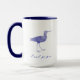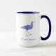 Cette tasse présente la silhouette bleu marine d'un bac à sable. Le mot "Sandpiper" apparaît dans la police de caractères en détresse ci-dessous. Un cadeau idéal pour les amateurs d'oiseaux ou tous ceux qui aiment passer du temps à la plage.