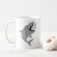 Commencez votre journée par une petite dose de créativité. Cette tasse présente une silhouette de baleine, fabriquée à partir d'une école de petits poissons. Il y a un sentier de poissons qui nagent directement dans la bouche de la baleine, donnant à la conception un sens du mouvement. C’est le cadeau idéal pour les amateurs de vie marine, les amateurs de café et tous ceux qui apprécient un peu la magie sous-marine avec leur brasse matinale.