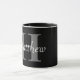 Élégante tasse monogramme noir et blanc. Parfait pour l'anniversaire, la Fête des pères. Personnalisez avec votre initiale et votre nom.