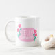 Éclairez vos matins avec une bonne dose de soleil. Cette tasse en céramique blanche présente des lettres roses joueuses encadrées de fleurs blanches, créant un design qui rayonne positivité avec chaque gorgée.
