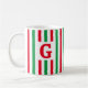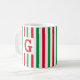 Cette tasse mignonne présente des rayures verticales rouges et vertes. Peut être personnalisée avec une initiale pour en faire un cadeau de vacances spécial.
