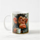 Mug humoristique avec singe fatigué en peignoir tenant une tasse de café, idéal pour les amateurs de café grincheux, les mauvais réveils et les matins difficiles.