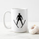 Dynamic and bold minimalist design capturing the intense moment of a ski jumper in mid-air. Sharp black silhouette of an athlete in full ski suit and helmet, legs wide in the classic V-style jump position, skis perfectly angled against a clean white background. High-contrast, powerful linework emphasizes speed, precision, and the thrill of flight. This striking graphic radiates pure adrenaline, winter sports energy, and extreme athleticism — perfect for ski lovers, freestyle fans, and anyone who appreciates clean, modern action silhouettes with serious edge.
