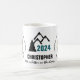 Composition cool et géniale d'un homme de montagne ou skieur de descente contre l'arrière - plan du cercle coloré. Le texte "SNOWMASS - 39°11'44"N 106°57'05"W - COLORADO, SKIING ME HAPPY" de la couleur noire fait le tour de l'image. Image silhouette de montagnes et d'un épinette, les textes "2024", "CHRISTOPHER", "La vie est meilleure sur les pistes !" sont situés au milieu. Toutes les images et textes sont personnalisables. Vous pouvez facilement les modifier en fonction de vos besoins et de vos souhaits. Belle tasse de café ou de thé pour la maison ou le bureau. Le design des sports d'hiver. Les stations de ski populaires aux Etats-Unis d'Amérique. Cette version est destinée aux arrière - plans blancs ou de couleur claire. La version pour les arrière - plans noirs ou de couleur foncée est également disponible. Les versions respectives pour les femmes vous attendent. Vous pouvez transférer cette conception à une variété de produits. Passez une bonne pause café !