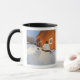 Mug Snowman devant la grange rouge à Columbia Falls