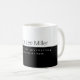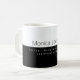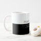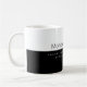 A modern half-black half-white coffee mug personalized with sans serif name and custom profession (Social Midia Marketing).