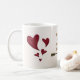 Cherchez-vous un article de cadeau spécial pour votre sœur ? Cette tasse présente un design de cœurs peints en rouge vif ainsi qu'une flèche dorée qui soutient les mots "Les sœurs sont des amies pour toujours". La collection de cœurs de différentes tailles apparaît de chaque côté de la tasse à café ou à thé du matin et la flèche avec le texte est présentée au centre. Le texte et la couleur de fond beige clair peuvent être personnalisés pour répondre à vos désirs.