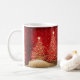 Élégant modèle de tasse de Noël avec des arbres de Noël scintillants sur le rouge. Impressionnez vos amis avec ce design chic et élégant. Entièrement personnalisable !