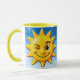 Ce mug joyeux met en scène un soleil jaune pétillant et malicieux, qui vous adresse un clin d’œil complice sur un fond ciel bleu éclatant. Avec sa anse et son intérieur jaune vif, ce mug lumineux respire la bonne humeur. Parfait pour offrir un peu de soleil à chaque café ou thé du matin !