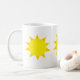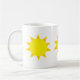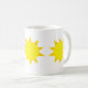 Les trois soleils jaunes sur une tasse de café ainsi vous peuvent se lever et briller.