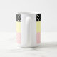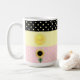 Belle tasse avec soleil et pois sur rayures noires, jaunes et roses.