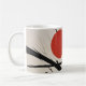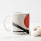 Un cercle rouge avec des lignes noires de différentes épaisseurs, sur un arrière - plan beige crée une belle représentation abstraite du soleil levant. Art simple, élégant, minimaliste.