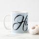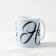 M. en script sur un arrière - plan bleu clair. Maniaque et classe à la fois.