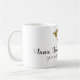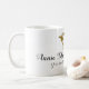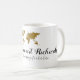 Une tasse blanche élégante et personnalisée pour cette femme spéciale, avec un nom écrit dans un style de police cursive et avec une fausse carte du monde en or... avec un texte personnalisé (message, citation, mots doux...)