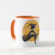 Ce modèle de tasse à thème "Halloween" personnalisable comprend une sorcière éffrayante volant sur un bâton de brosse avec un texte que vous pouvez personnaliser.