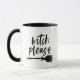 Drôle tasse à café Halloween avec l’expression "Sorcière s’il vous plaît" dans un script ludique et écrit à la main avec le balai d’une sorcière en dessous. Cette tasse d'Halloween est parfaite pour boire du café, du thé ou du cacao chaud tout en ajoutant un peu d'humour de saison à votre journée. Fait un grand cadeau pour les amis, les collègues, ou toute personne qui aime un bon jeu de mots sorcier - amusant à utiliser pour Halloween ou toute l'année.