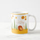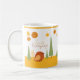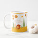 Adorable "Smile Everyday" Boho design café tasse avec petit oiseau, soleil et arbres.