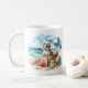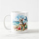 L'été vibes tasse avec une souris d'aquarelle avec des fruits sur la plage. Personnalisable .