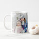 Personnalisez ce café de Noël festif ou tasse de cacao chaud avec deux photos préférées et le texte personnalisé "Winter Memories". Le design est doté d'un motif blanc à flocon de neige en hiver. La couleur arrière - plan gris neutre peut être customisée pour être coordonnée avec votre design photo.