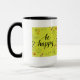 Citation d'inspiration - soyez heureux - manuscrite dans le style moderne de calligraphie avec les fleurs sauvages roses et jaunes peintes dans l'aquarelle. Dirigez le design de carte. | Bigstock® - tous droits réservés.