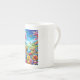 jolie porcelaine, bonne dimension effet brillant bien dans l'ensemble. Le motif et les couleurs sont réussis.Je trouve néanmoins dommage de ne pas occuper tout l'espace avc le motif car la partie rouge au dos de la tasse est trop présente et pas intéressante visuellement.