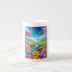 jolie porcelaine, bonne dimension effet brillant bien dans l'ensemble. Le motif et les couleurs sont réussis.Je trouve néanmoins dommage de ne pas occuper tout l'espace avc le motif car la partie rouge au dos de la tasse est trop présente et pas intéressante visuellement.