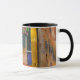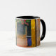 Cette tasse décorative présente une adaptation en forme de wraparound d'un tableau d'art d'une petite rue de Ste-Croix, Iles Vierges, réalisé par l'artiste américaine Anna Unterman. La scène lumineuse et ensoleillée est une émeute de couleurs. On y trouve des vignes à flamme orange, d'autres arbustes verts et des feuilles. Les bâtiments colorés sont jaunes, dorés, bleus, rouges, noirs et verts. Reproduite avec l'autorisation de la succession d'Anna Unterman. Tous droits réservés.