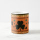 Des shamrocks verts sur un arrière - plan orange sont bordés de fleurs jaunes sur cette belle tasse pour la Saint Patrick. . . ou tout autre jour.